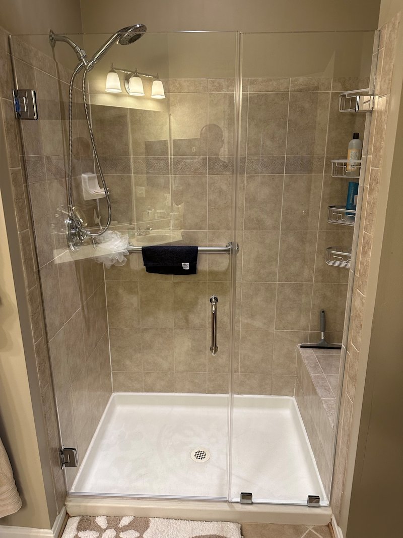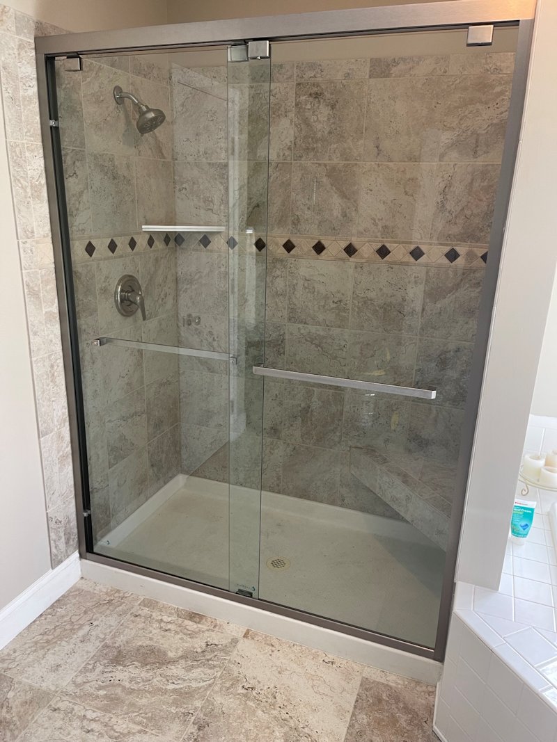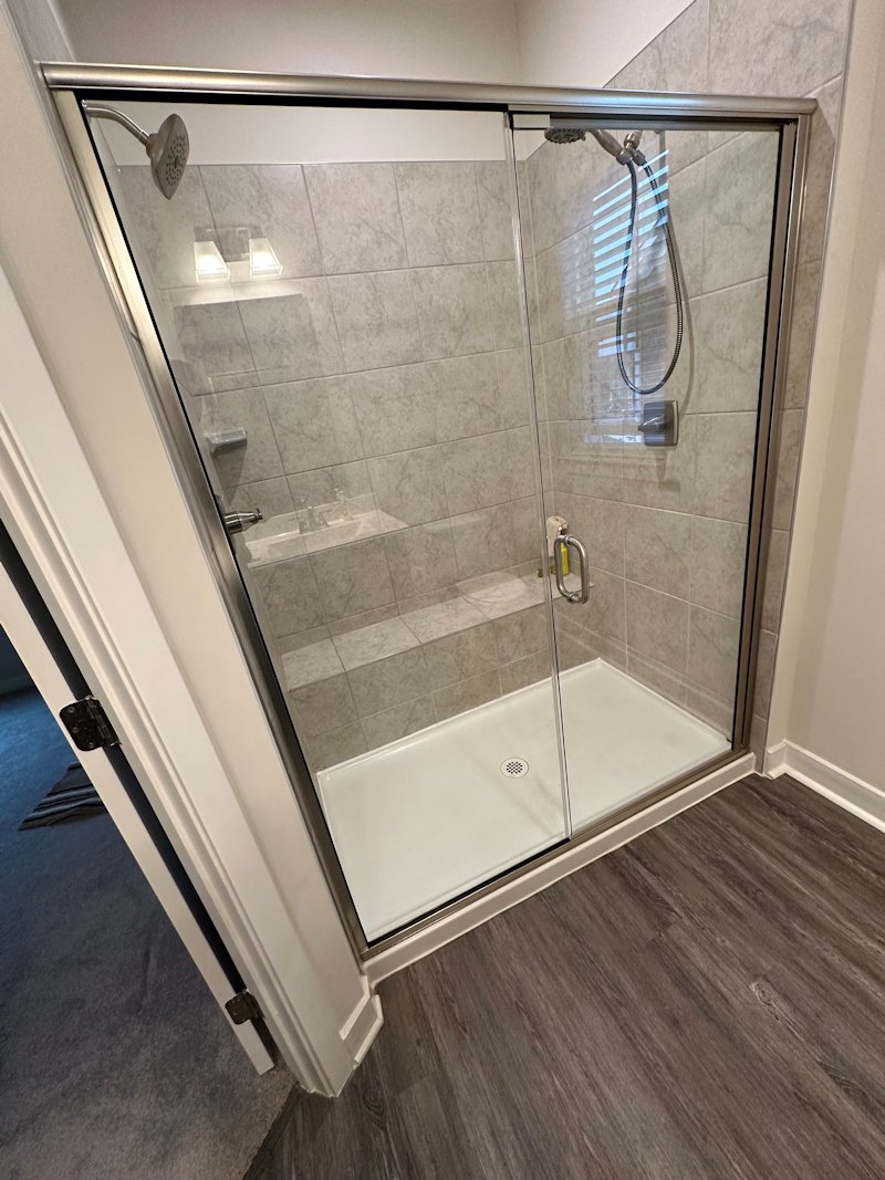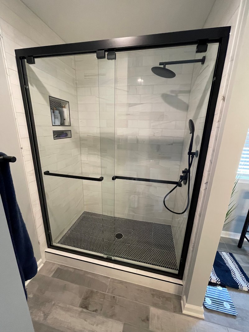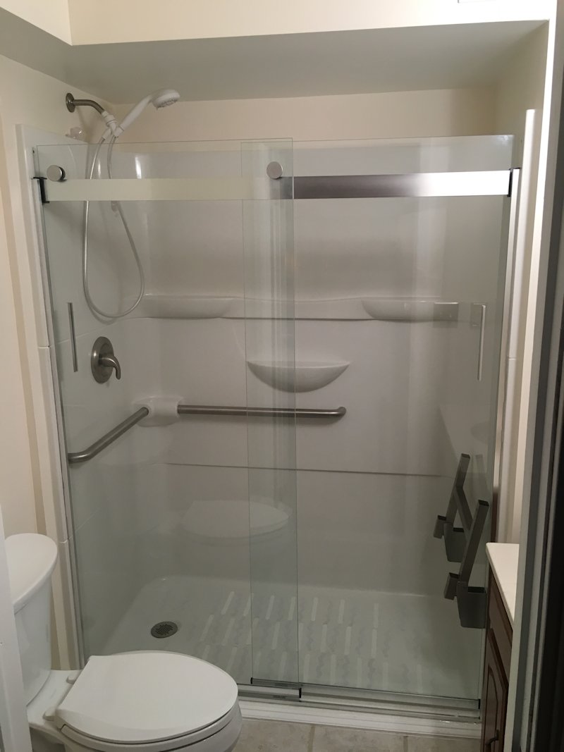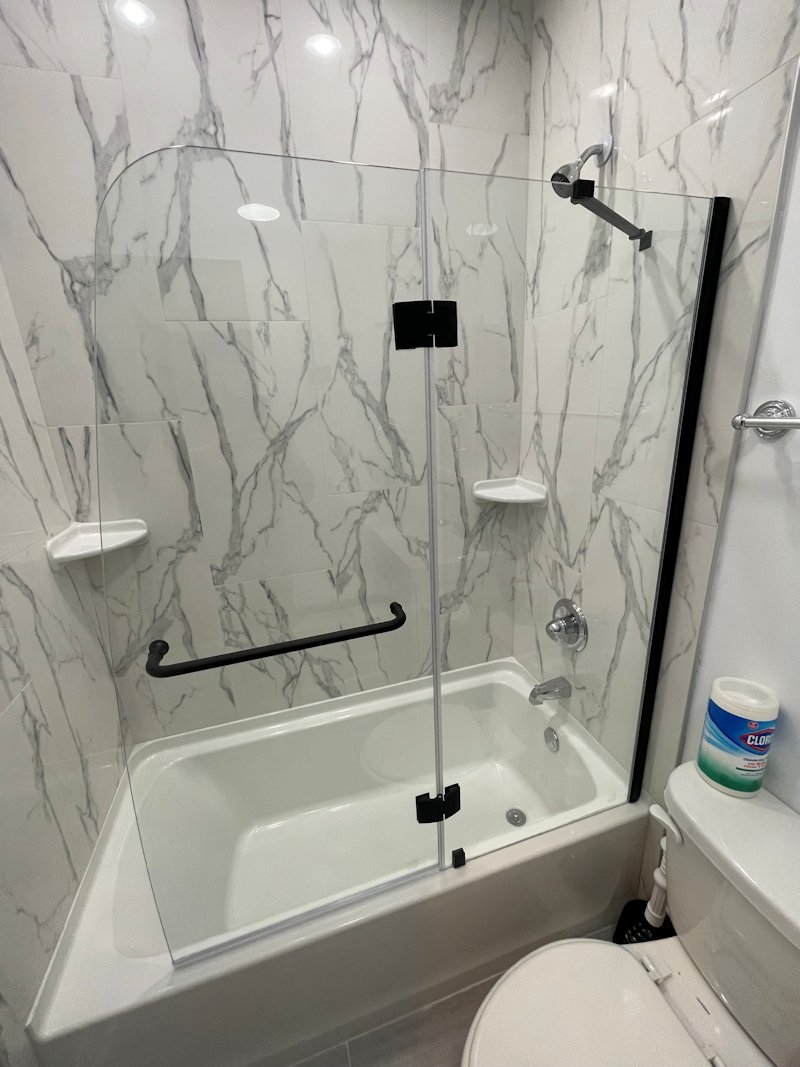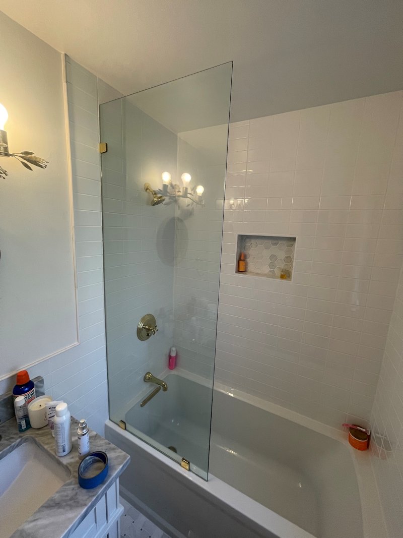 Perfect for alcove showers or baths, inline enclosures feature a straight-line design. Doors can be rolling, sliding, or hinged, or can be fixed panels (screens) that cover part of the opening. See below for examples of each.