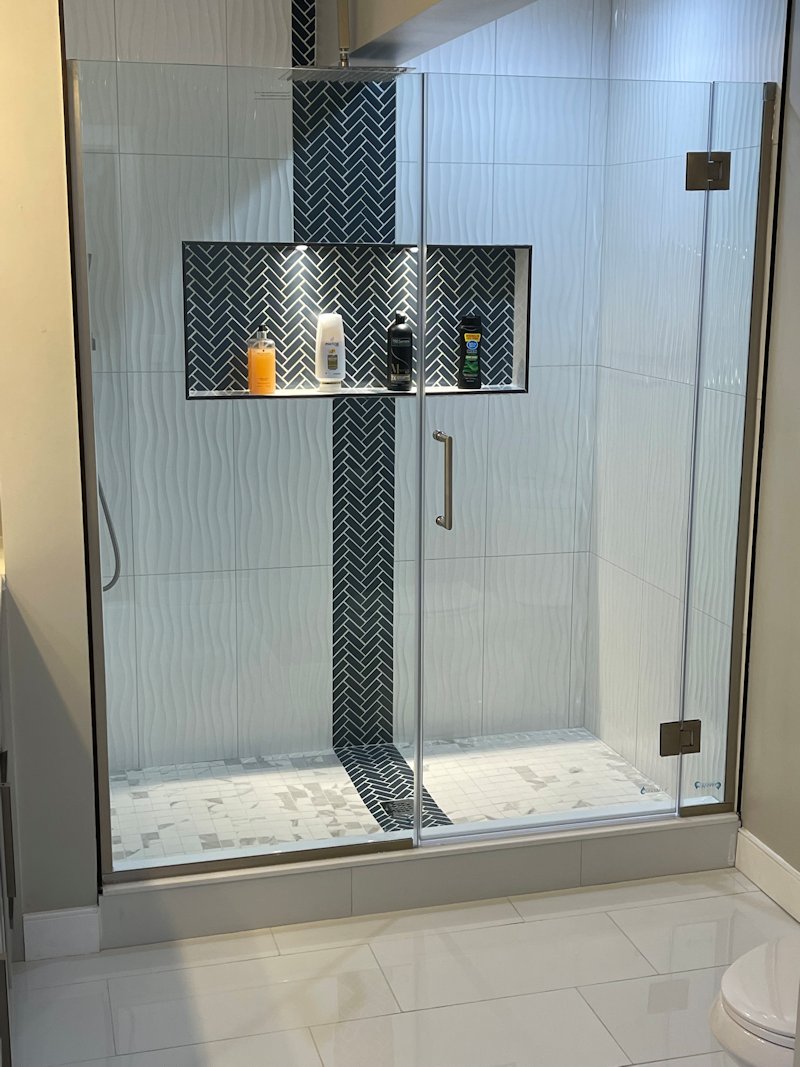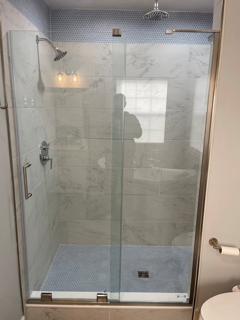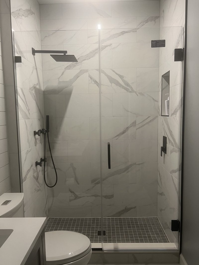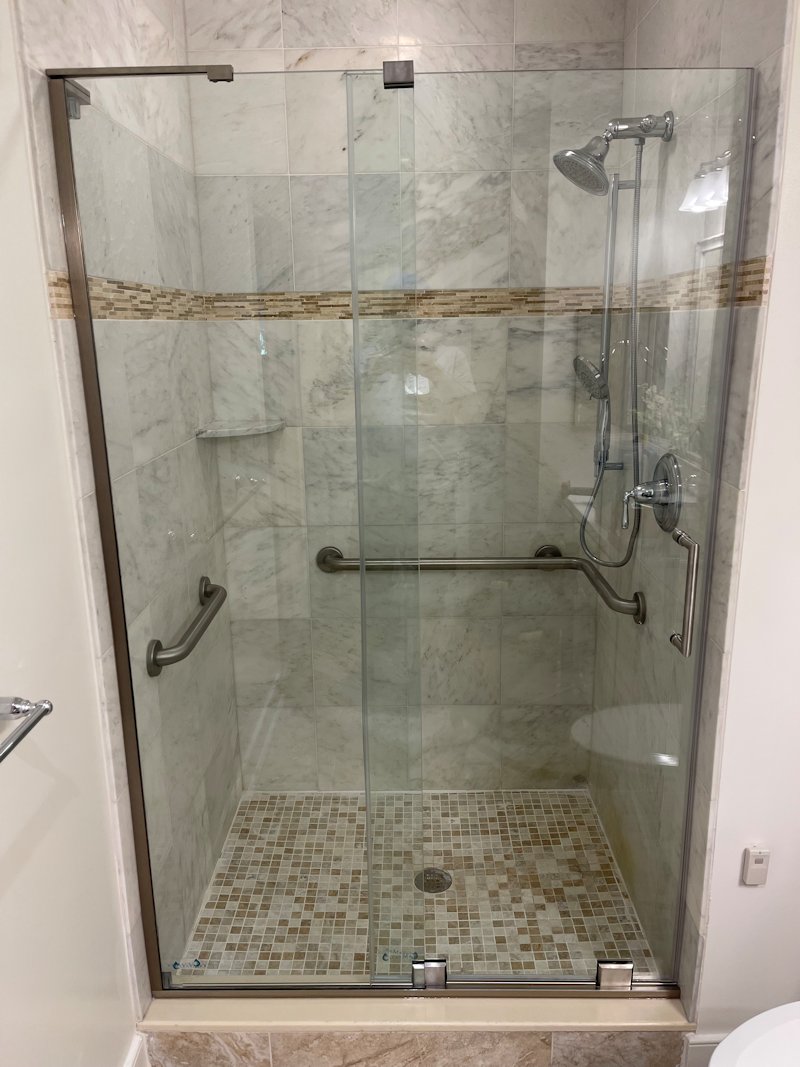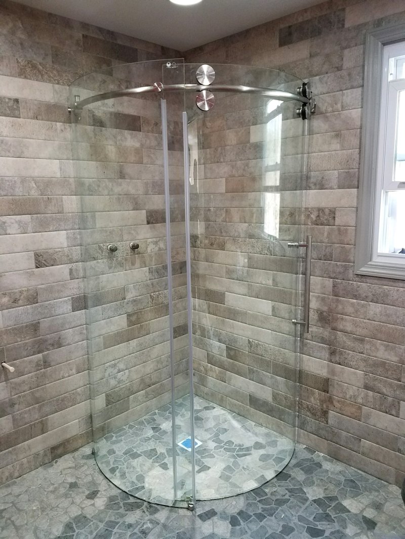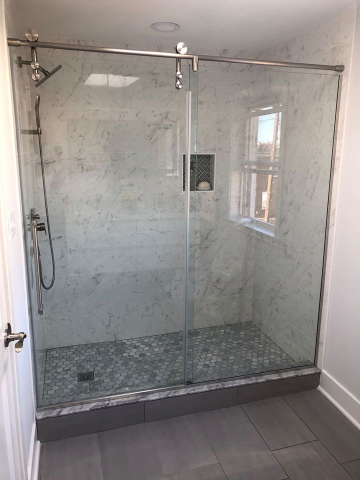 Perfect for alcove showers or baths, inline enclosures feature a straight-line design. Doors can be rolling, sliding, or hinged, or can be fixed panels (screens) that cover part of the opening. See below for examples of each.