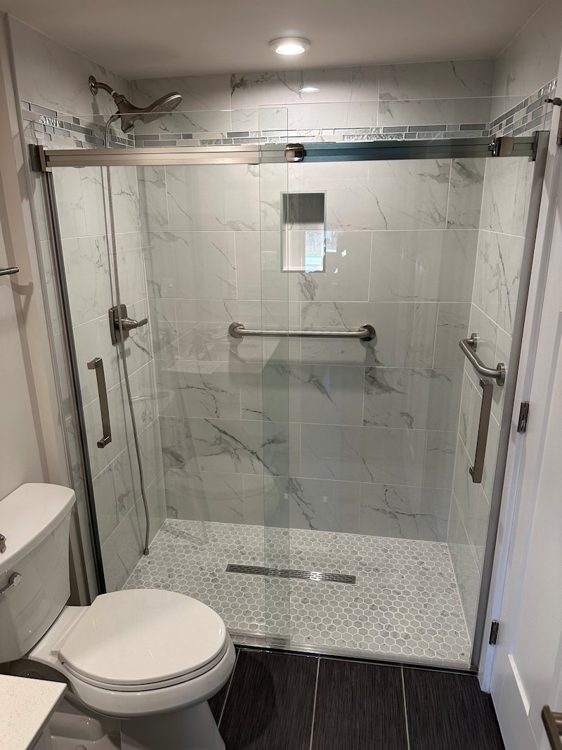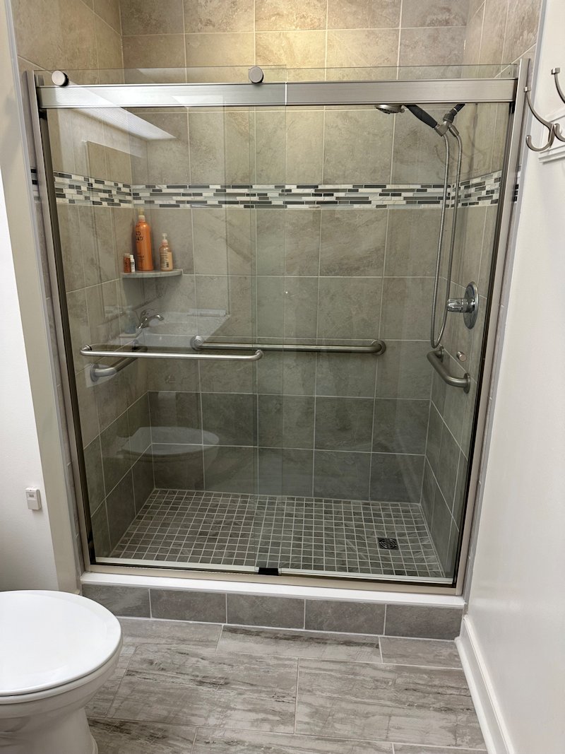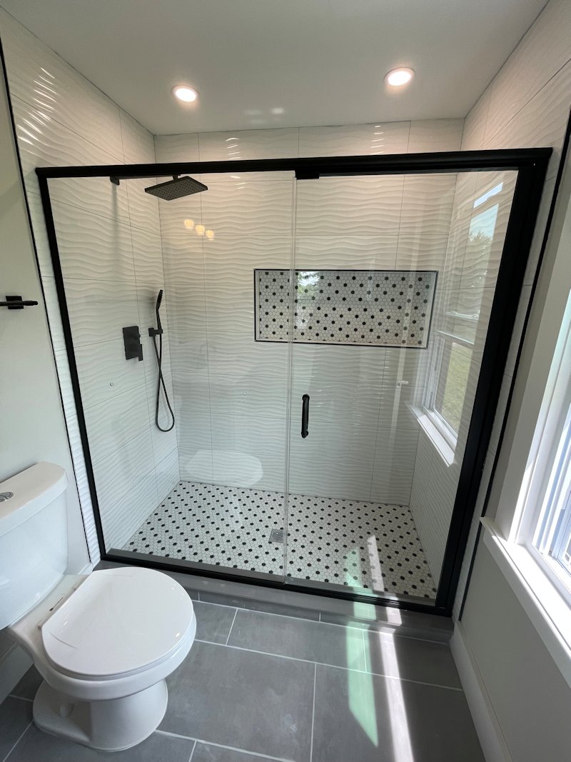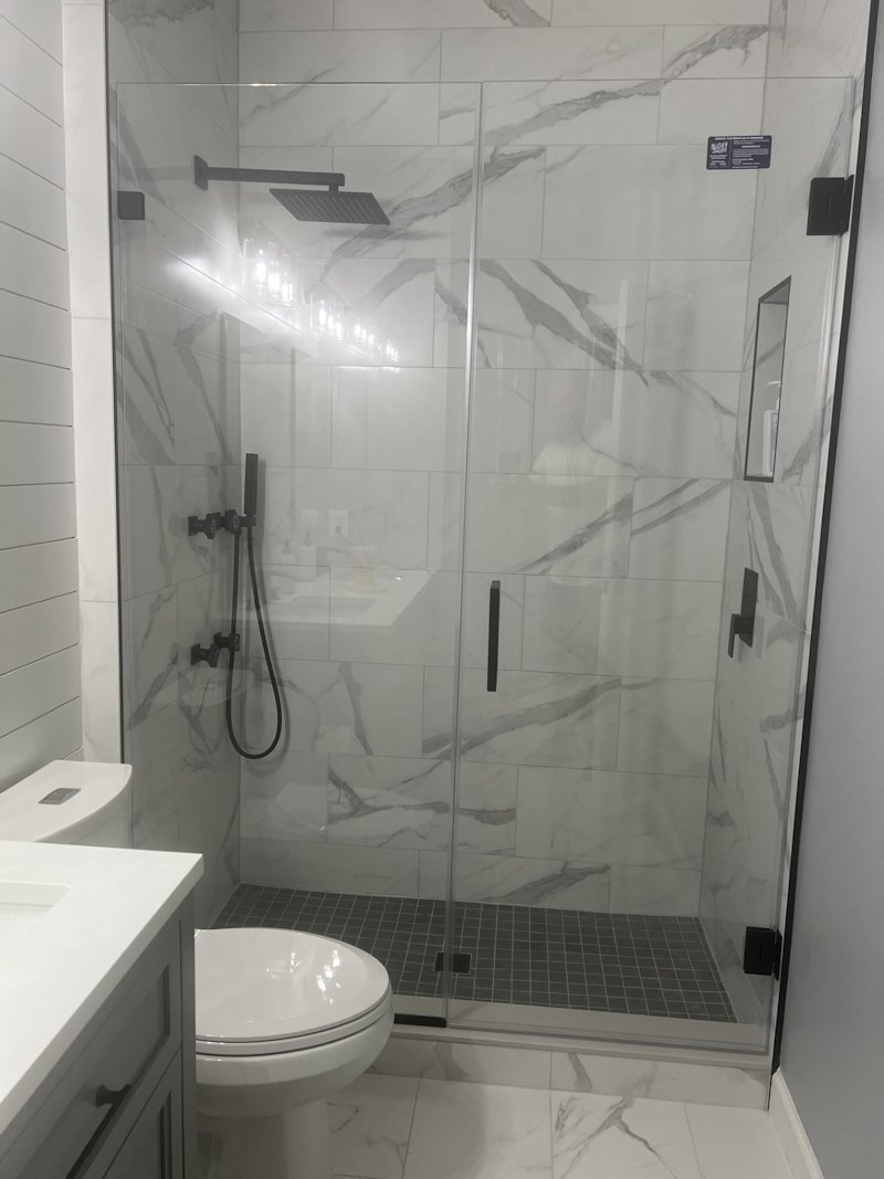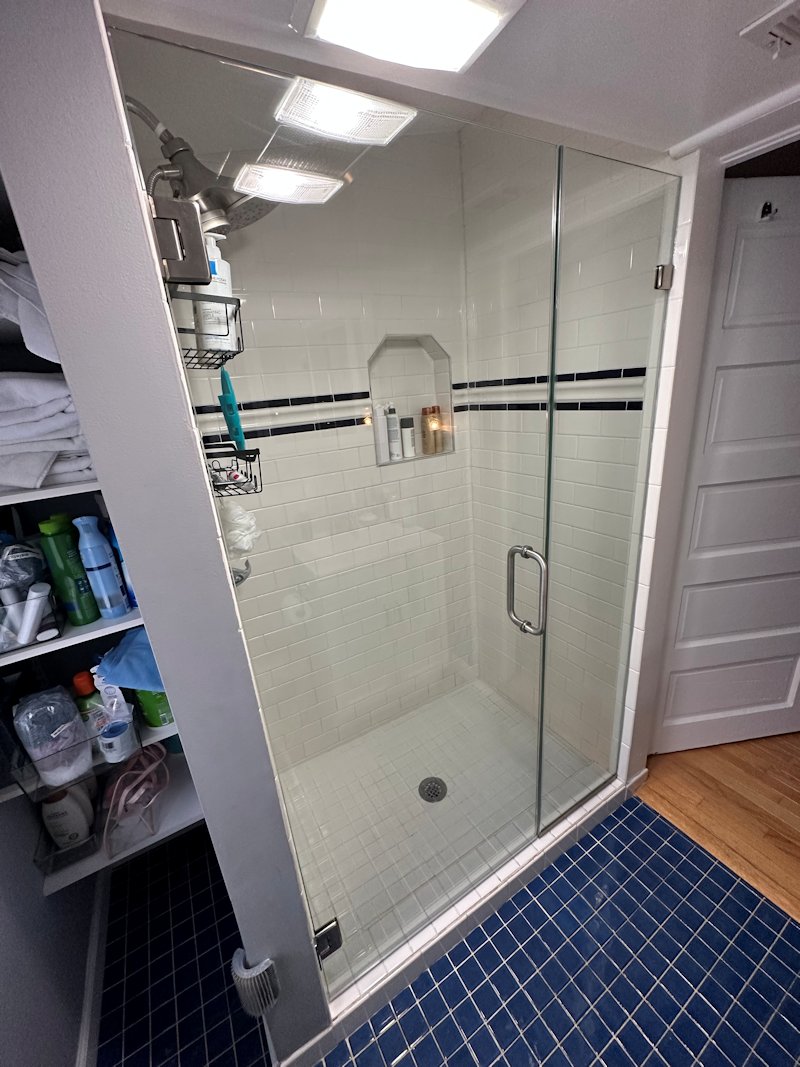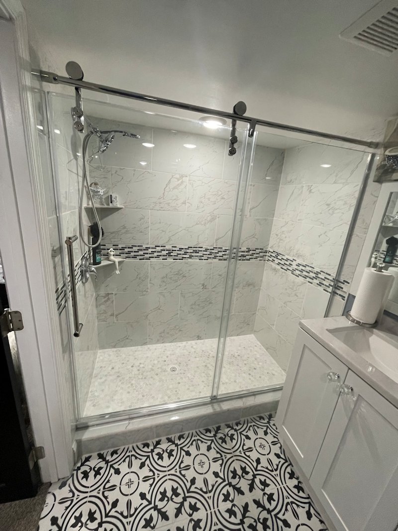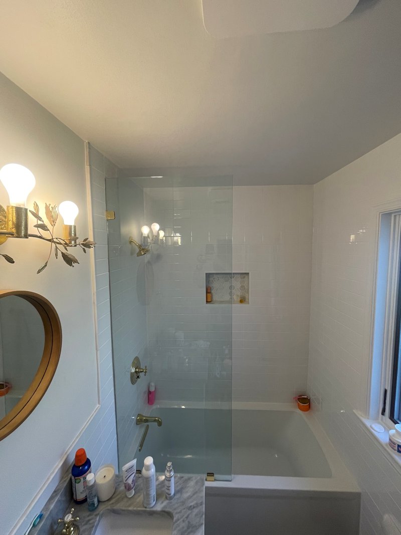Perfect for alcove showers or baths, inline enclosures feature a straight-line design. Doors can be rolling, sliding, or hinged, or can be fixed panels (screens) that cover part of the opening. See below for examples of each.